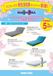 新生活を質の良い睡眠で、『お値打ち』に応援いたします。 是非この機会に、マニフレックスの寝心地を試し寝にご来店ください!!