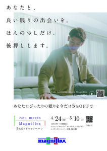 本キャンペーンでは、マニフレックス対象商品を5%OFFでお求めいただけます。
